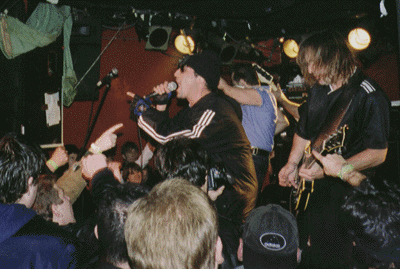 Speaking of punches and fists . . . all the world’s got a one-way ticket to heck! New Year’s Eve is certainly amateur night worldwide, and Coney Island High is no exception tonight. A dazed girl makes her way onstage and babbles incoherently into the mic until Manitoba tires of her. A gangly stage diver in a wife-beater keeps getting busted by security. A blond chick gets her ass kicked in the most amazing catfight I’ve ever had ringside seats to. Other scuffles abound, but alas, no food fight.