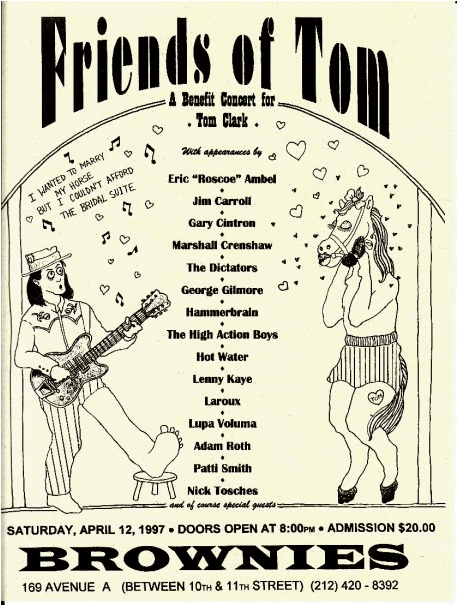 April 12 marked the anniversary of 1997’s star-studded Tom Clark Benefit at Brownie’s in NYC. The DFFD Blog asked Dictators fan Adam Gerstein for his memories of the show.