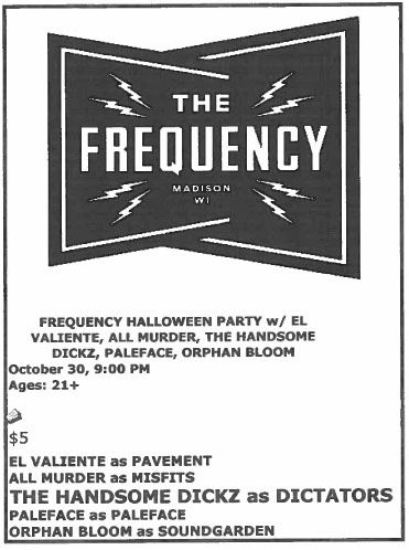 And in THIS corner, from Madison, WI, wearing matching flannel and Bucky Badger sweatshirts, weighing in at a combined 720 lbs (723 if they’ve had breakfast), Kyle Motor, Dan Motor, Aaron Motor, and Josh Motor, usually known as The Motorz, Wisconsin’s finest purveyors of sweet and hot r & r, but who for the evening of Saturday, Oct. 30, when they play an all-Dictators set at the Frequency in Madison, will be known as The Handsome Dickz.